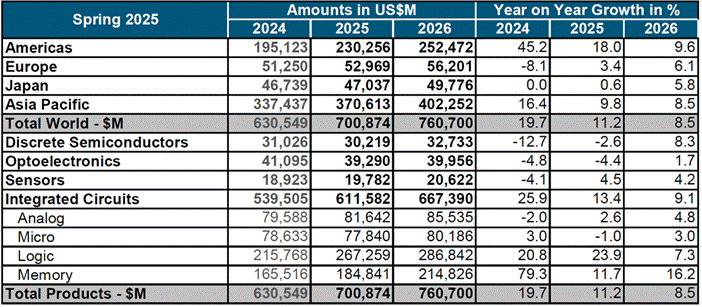 世界半導(dǎo)體貿(mào)易統(tǒng)計(jì)組織(WSTS)發(fā)布了其最新的全球半導(dǎo)體市場預(yù)測,確認(rèn)了2025年的增長,并強(qiáng)調(diào)到2026年全球半導(dǎo)體市場將繼續(xù)保持強(qiáng)勁增長。